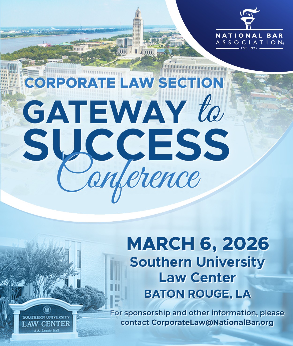 The 14th Annual Gateway to Success Conference will be held on the historic campus of Southern University Law Center in Baton Rouge, LA. The Gateway to Success Conference is a premier, one-day event designed to provide substantive legal knowledge and career-building strategies. Set in an intimate environment, this conference offers the rare time and space to forge authentic connections with industry titans. Focusing on the trajectory toward GC, CLO, Managing Partner, and Board roles, our curriculum delivers the substantive legal expertise and career architecture needed to scale the next summit of your professional journey. Simultaneously, we are dedicated to mentoring the next generation, providing law students with a direct pipeline to the world of corporate practice.